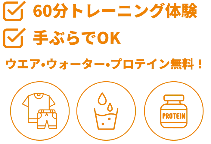 ウォーミングアップ後、60分トレーニングを体験いただきます。